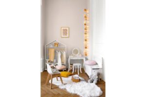 Kid’s imagination in boundaryless and so should be their room. Variety of inspirational colors and interesting shapes of furniture help developing your kid’s imagination further. Remember, that the kid’s room is also a place for relaxation after a busy day of exploring new things. Therefore, make sure to furnish it with a comfortable bed, suited to your child’s age and character. Arrange dreamy play area, with colorful tables and chairs and attractive toys arranged in a fun storage basket, where your child will enjoy learning and playing on their own and with their friends. Supplement the space with some beautiful accessories for an even cuter look.