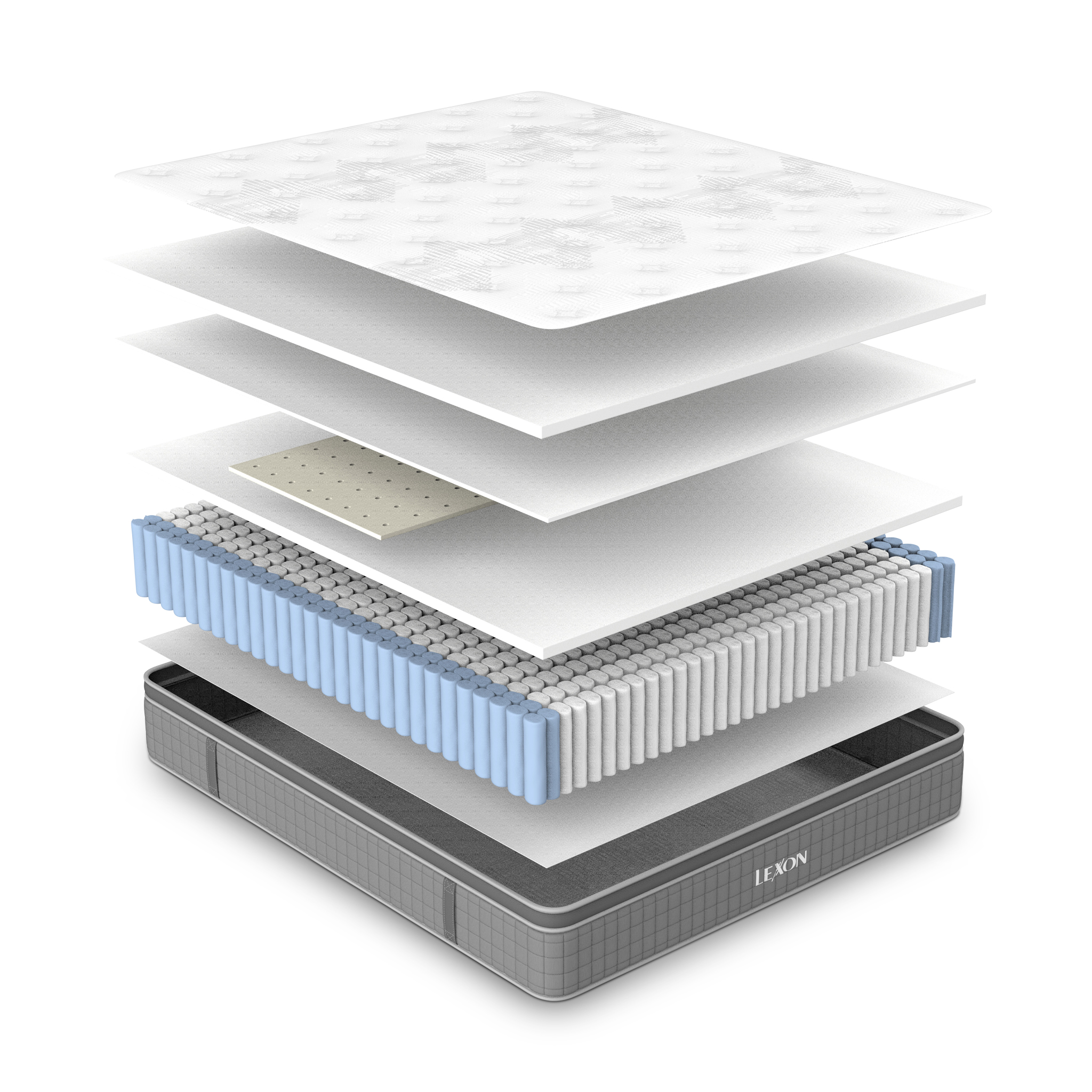 2cm 20D Air Memory Foam Quilted, 1cm 22D Extra Soft PU Foam Quilted, 24cm 2.0mm Pocket Spring With Enhanced Edge, 0.5cm 70D Latex, 2cm 28D Medium PU Foam