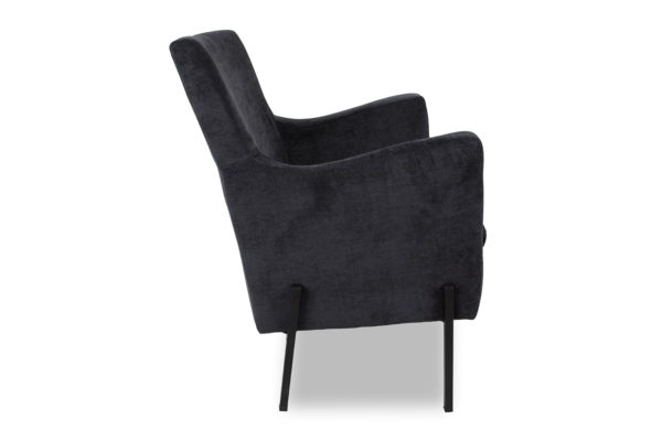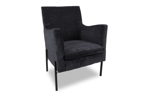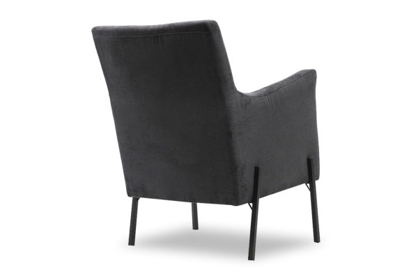 The upper half of this BRAND armchair is reminiscent of traditional sofas while the lower half brings an edge of modernity to it. The minimal metallic legs tie in nicely with the fabric upholstery creating a unique accent for any living room. Available in other colours.