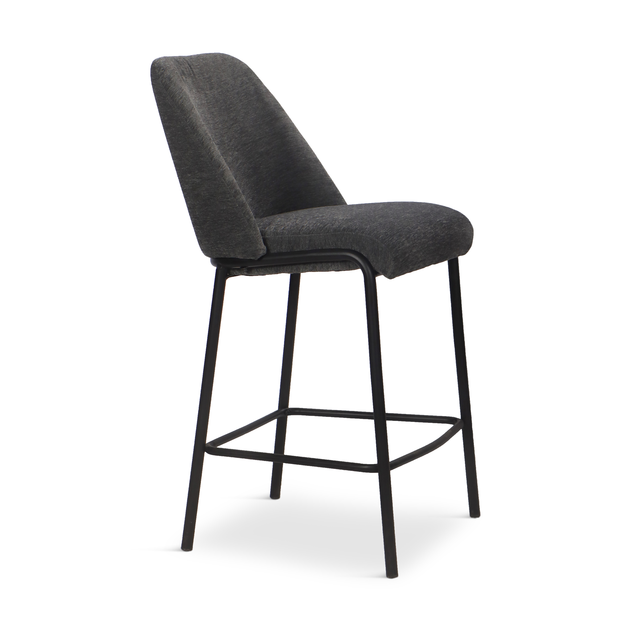 Frame: Durable matte black metal legs with integrated footrest for stability.