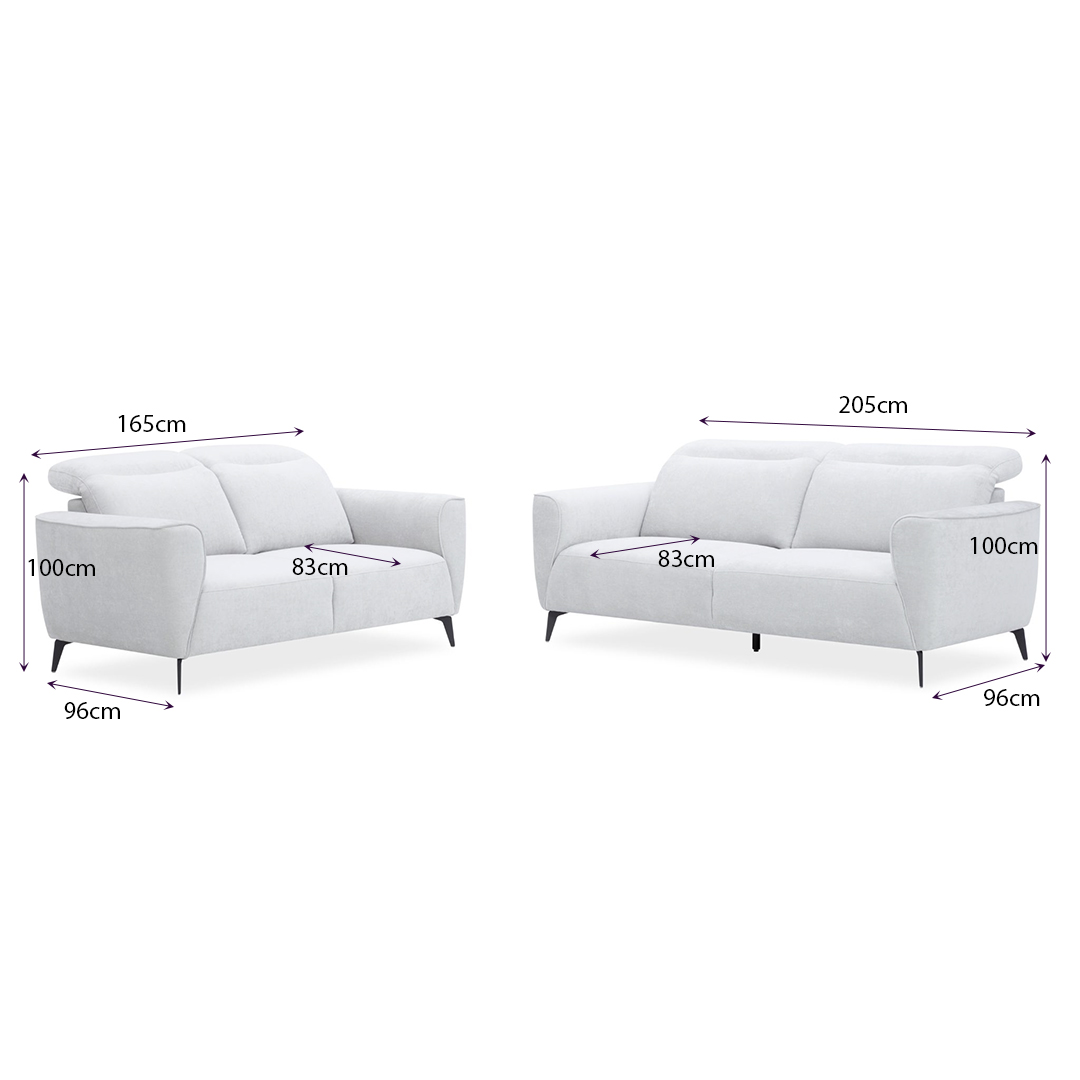 - 3-Seater: 205 × 100 × 83–96 cm
