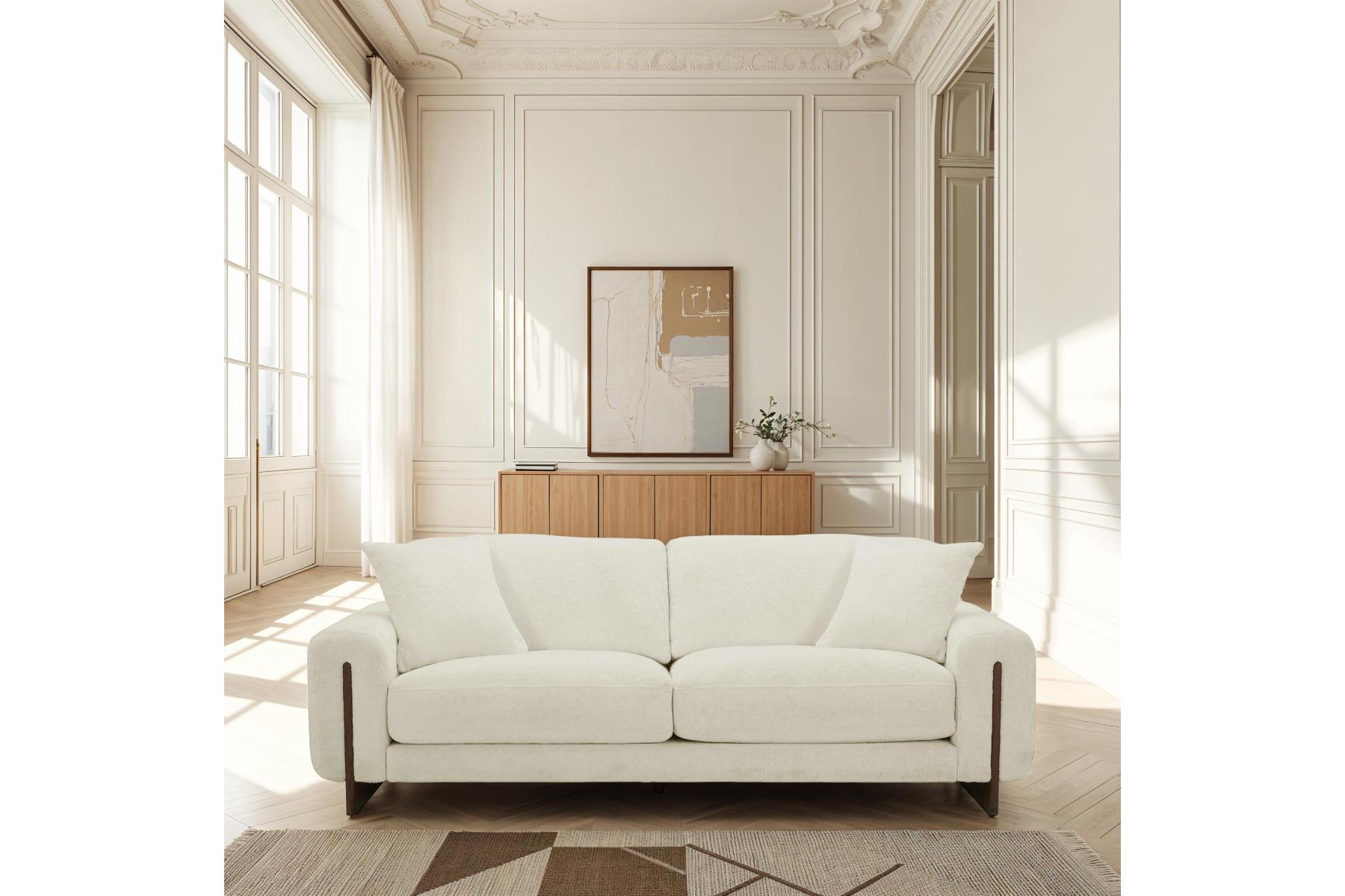 Built for long lounging sessions and lively gatherings alike. Upholstered in fabric, in beige. Dimensions 247x96x60cm featuring low back profile for a contemporary look. Set it in the living room, media space, or an open-plan area to anchor conversation and downtime. Supportive cushions and balanced seat height encourage long reads, movie nights, and casual hosting. Pair with a textured rug and a low table to complete a relaxed, cohesive look. Subtle detailing and tidy proportions make styling effortless across modern and transitional interiors.