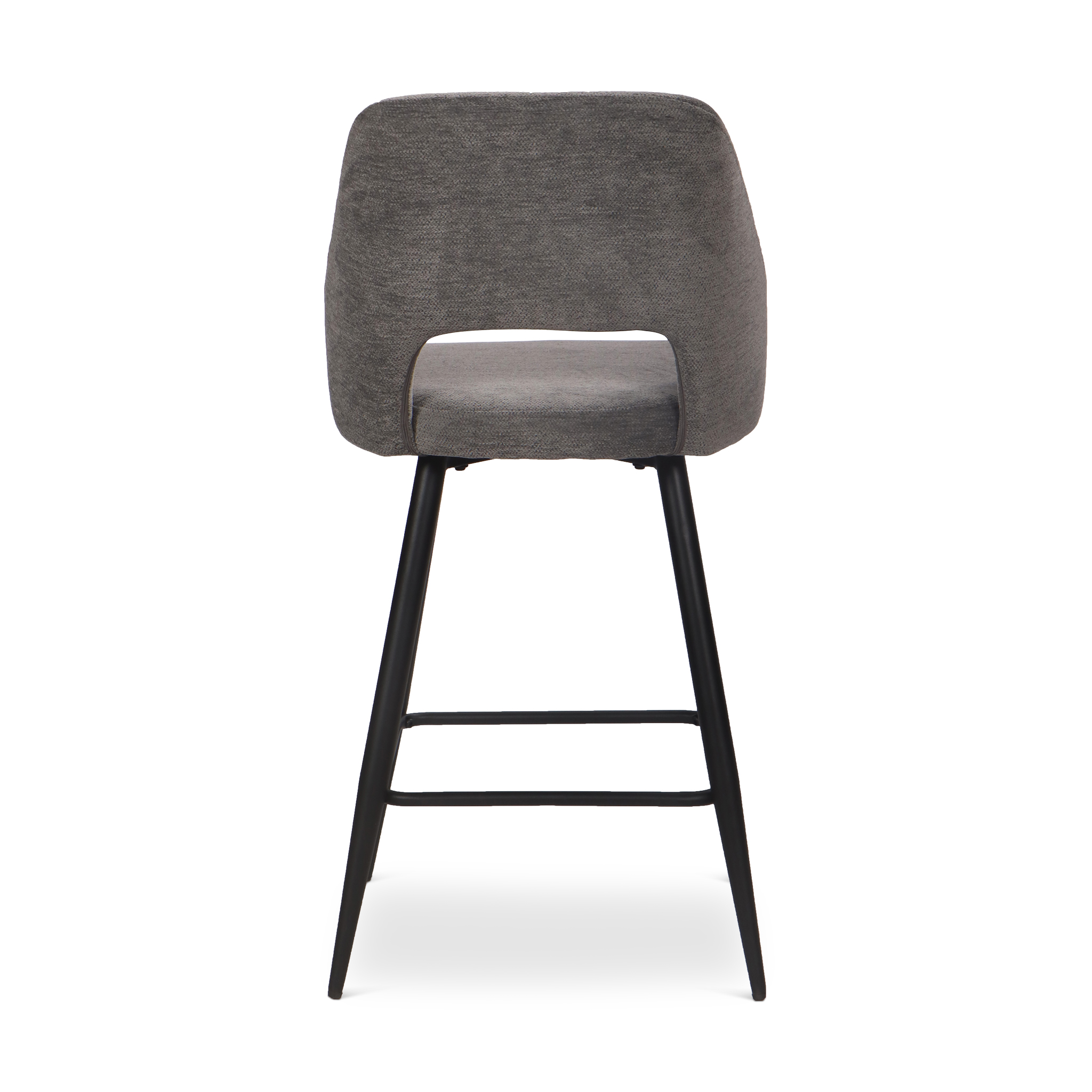 Upholstery: Dark grey fabric seat and back for a contemporary look.
