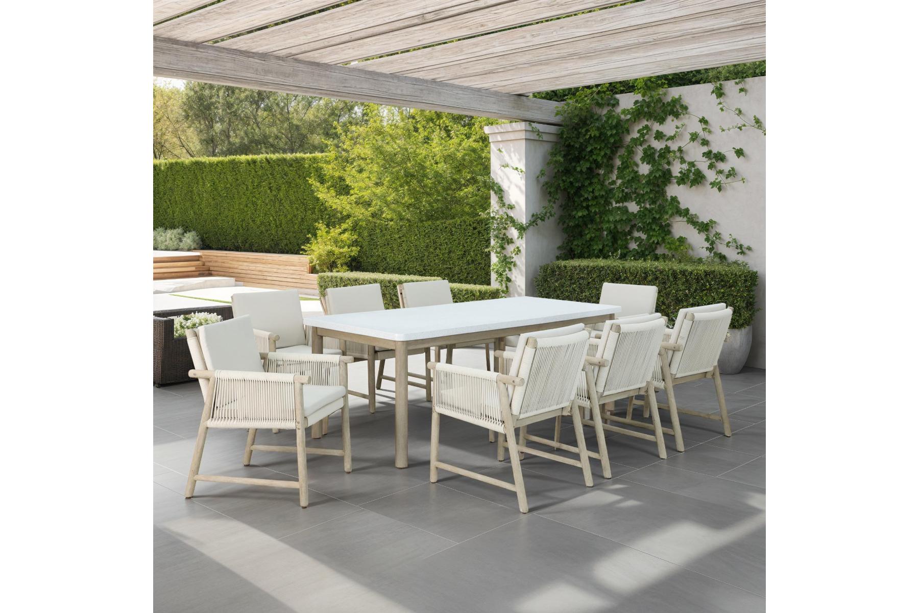 Chairs:Acacia Wood+Rope, Table:Cement top with terrazzo look+Acacia wood